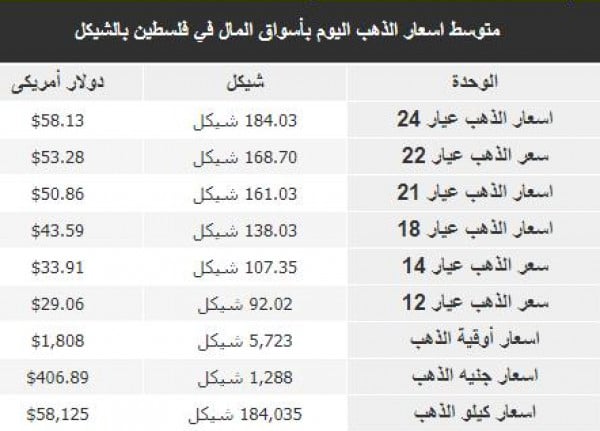 تعرف على أسعار الذهب في أسواق فلسطين