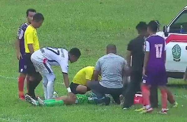 شاهد: وفاة حارس كرة قدم إندونيسي بعد اصطدمه بلاعب فريق الخصم