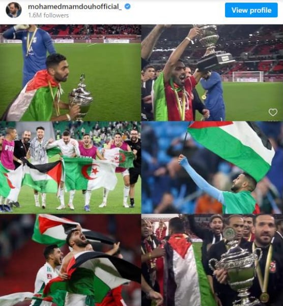 علّق الفنان المصري محمد ممدوح على ظاهرة رفع اللاعبين العرب علم فلسطين، في المباريات الأخيرة، والتي كان آخرها كأس السوبر الأفريقي، حيث رفع لاعبو الأهلي المصري أعلام فلسطين بعد الفوز على الرجاء المغربي، ومن قبلهم لاعبو الجزائر وتونس رفعوا أعلام فلسطين، طوال بطولة كأس العرب التي أقيمت في قطر.