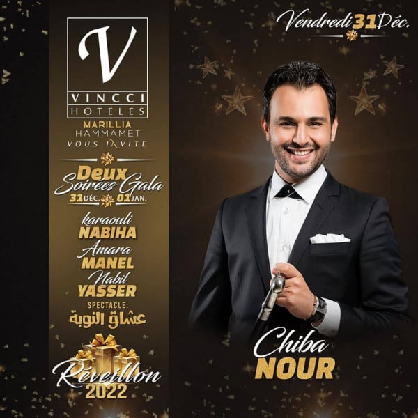 والمُتصفّح لحساب نُور شيبة على (فيس بُوك) يُلاحظُ أنّه نشر "أفيشات" الإشْهار والدّعاية لحفلات رأس العام يوم الجمعة المُقبل 31 ديسمبر2021 التّي سيُشاركُ فيها في ثلاث فنادق فخمة ،كما أعلن عن حفلة في باريس يوم15 يناير 2022 .