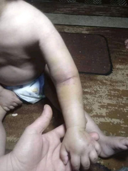 وعن وضع الطفلتين قال: "نرمين البالغة من العمر سنة وثمانية أشهر مصابة بخلع في كتفها، أما شقيقتها نور البالغة من العمر ثلاث سنوات فوضعها أفضل تستطيع المشي رغم إصابتها في حوضها".