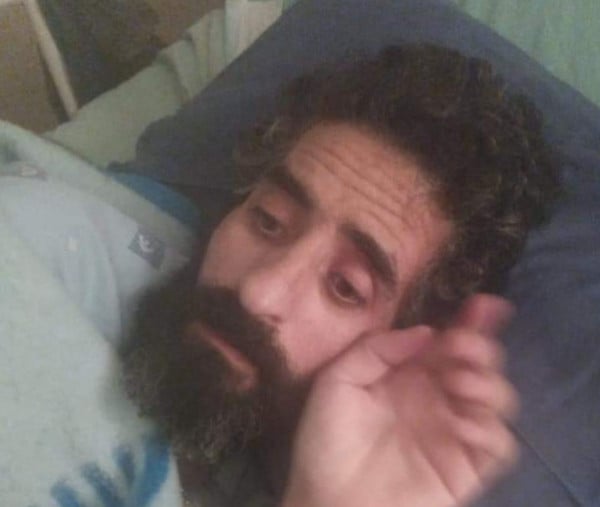 يستطيع النّوم من شدّة الأوجاع في كافة أنحاء جسده، ويتنقّل على كرسي متحرّك، بالإضافة إلى معاناته من التقيّؤ بشكل مستمر.
