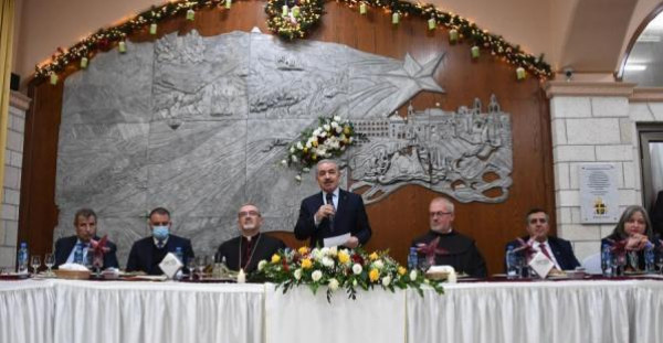 حضر رئيس الوزراء الفلسطيني محمد اشتية، قداس منتصف الليل لعيد الميلاد المجيد للكنائس المسيحية التي تسير حسب التقويم الشرقي، في كنيسة المهد بمدينة بيت لحم، نيابة عن الرئيس محمود عباس.