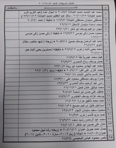 بالأسماء: الداخلية بغزة تنشر كشف تنسيقات مصرية للسفر يوم الأحد