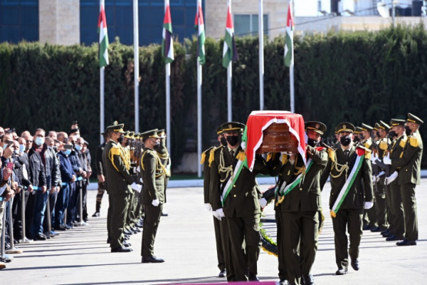 وألقى الرئيس والمشاركون نظرة الوداع الأخيرة على جثمانه، ووضع على نعشه إكليلاً من الزهور، وذلك قبل أن يتوجه الموكب الجنائزي إلى مقبرة مدينة البيرة، لمواراته الثرى.