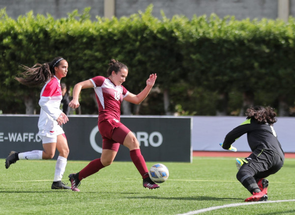 وفي الوقت الإضافي من عمر الشوط الأول، قلّصت واعدات فلسطين الفارق بهدف اللاعبة لين خوري، وفي الشوط الثاني، سيطر واعدات فلسطين على أجواء المباراة، لكن دون تغيير في النتيجة.