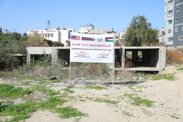 شرعت وزارة الأوقاف والشؤون الدينية بإعمار مبنى وقفية (فلسطين) بمنطقة الساحة وسط قطاع غزة على مساحة (2400) متر مربع بتكلفة (1,774,600$) وبتمويل كريم من مسلم كير ماليزيا وذلك من خلال تسليم الموقع لشركة جولدن ستبس للتجارة
