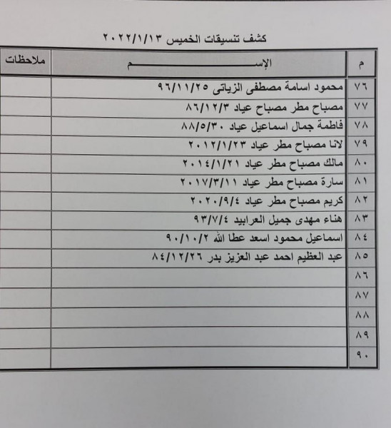 وعلى المسافرين التوجه لإجراء فحص (كورونا) بدءاً من الساعة 9 صباح الأربعاء في المراكز الصحية المعلن عنها مسبقاً بجميع المحافظات.
