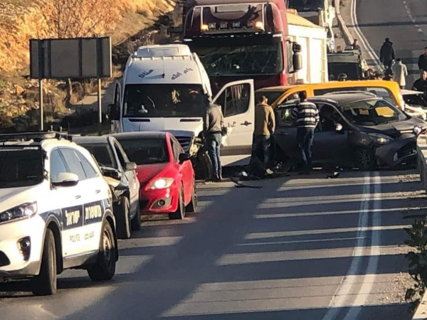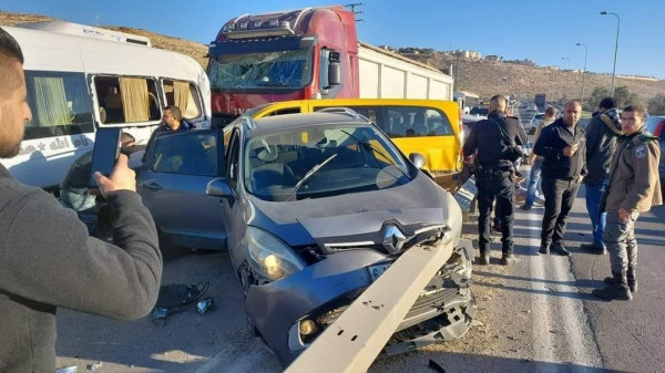 أصيب تسعة مواطنين، اليوم الأربعاء، إثر حادث سير وقع بين خمس مركبات على الشارع الواصل بين حزما وجبع، شمال شرق القدس.