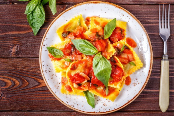 - حمري الزيت في مقلاة وقلبي البصل والجزر فيه ثم أضيفي إليه صلصة البندورة والملح والفلفل وارفعي المزيج عن النار وأضيفي قطع الرافيولي.