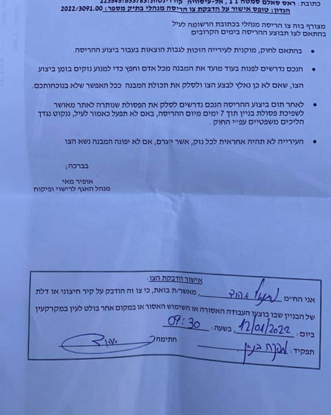 وكانت سلطات الاحتلال اقتحمت البلدة في الثالث من كانون الثاني الجاري، وعلَّقت إخطارا بإيقاف أعمال البناء في المسجد.