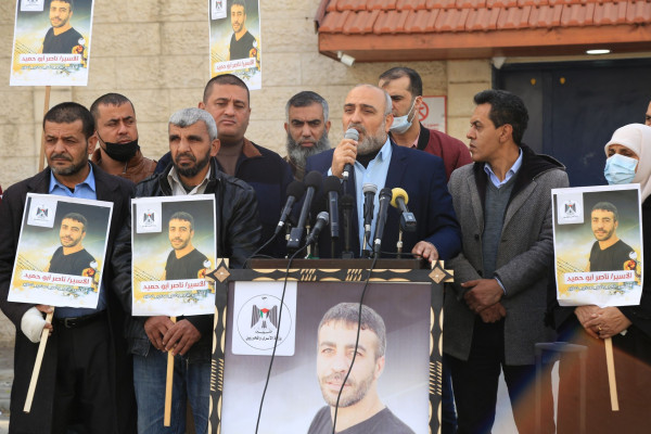 وجاء ذلك خلال وقفة للمطالبة بالإفراج عن الأسير أبو حميد في غزة اليوم الخميس، أمام مقر المندوب السامي للأمم المتحدة بمدينة غزة، بمشاركة لجنة أهالي الأسرى والهيئة الدولية لدعم حقوق الشعب الفلسطيني "حشد"، وفصائل وقوى وطنية وإسلامية.