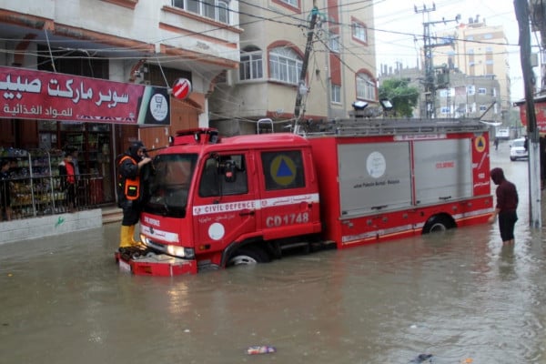 شاهد: الدفاع المدني بغزة يُنفذ 260 مهمة خلال المنخفض الجوي