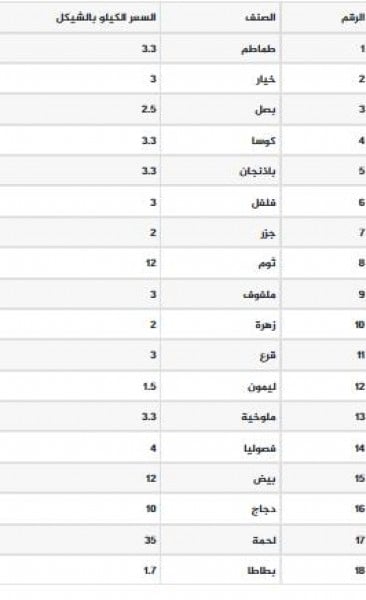 جاء متوسط أسعار المنتجات الزراعية بالشيكل، صباح اليوم الأربعاء، إذ لا تزيد الاسعارعن المدونة أدناه للمستهلك: