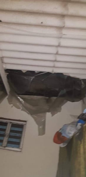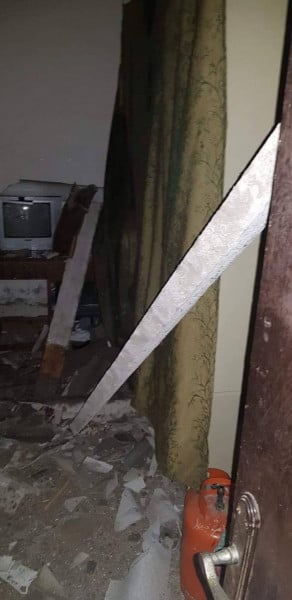 ولم يصاب أي من أفراد العائلة التي تعيش في منزل لا يصلح للسكن، بأي أذى.
