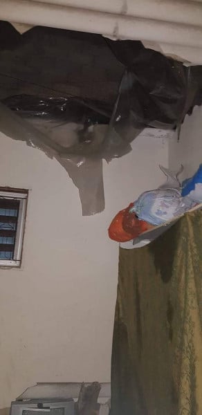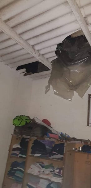 فيما نجت أسرة المواطن ناصر جبريل في مخيم البريج وسط قطاع غزة، من موت محقق بعد سقوط سقف غرفة النوم (من الصفيح والأسبست) بمنزلها على أفراد العائلة وهم نيام.