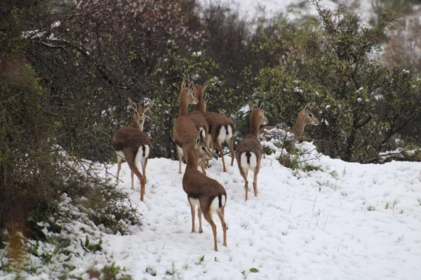 وقالت في بيان أصدرته اليوم أنه وبسبب تساقط الثلوج في فلسطين فإنه الحيوانات البرية ومنها الغزلان تتعرض لصعوبة الحركة نتيجة البرد القارس مما يعرضها لحالات الصيد من قبل المواطنين والتي تؤثر سلبا على التوازن والتنوع الحيوي البيئي الفلسطيني.