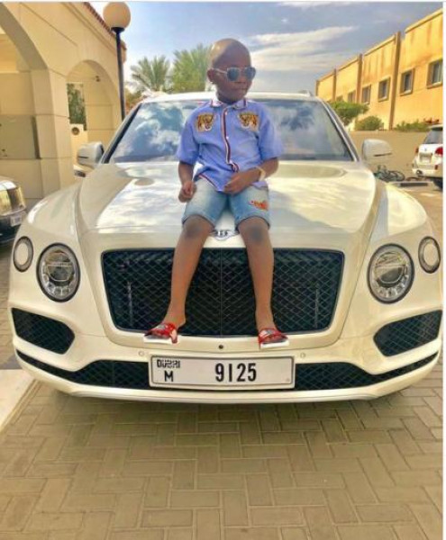 وتظهر إحدى الصور على (إنستغرام) وهو جالس على غطاء محرك سيارة بنتلي فلاينغ سبير، وهي أول هدية من قبل والده.