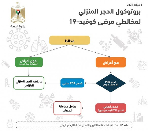 حدثت وزارة الصحة، مساء اليوم الثلاثاء، بروتوكول الحجر المنزلي للمصابين بفيروس (كورونا) والمخالطين لهم.