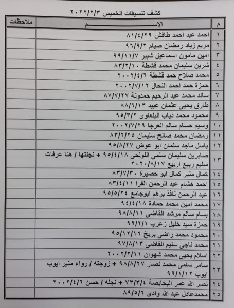 تعلن الهيئة العامة للمعابر والحدود بوزارة الداخلية والأمن الوطني، بغزة، عن وصول كشف "تنسيقات مصرية" للسفر عبر معبر رفح البري يوم الخميس (3 فبراير)، والذين عليهم التوجه لإجراء فحص كورونا بدءاً من الساعة 9 صباح الأربعاء في المراكز الصحية المعلن عنها مسبقاً بجميع المحافظات.