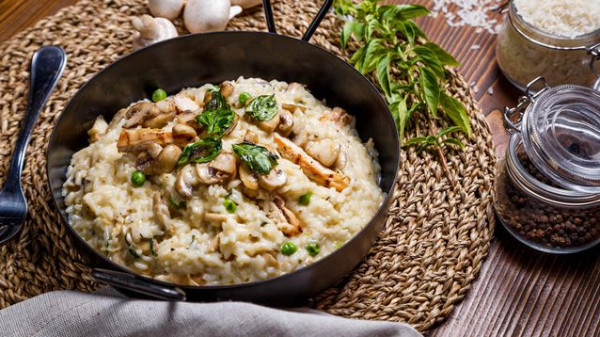 يقلب جيداً لتوزيع النشاء فيه وجعل الريزوتو كريمياً.