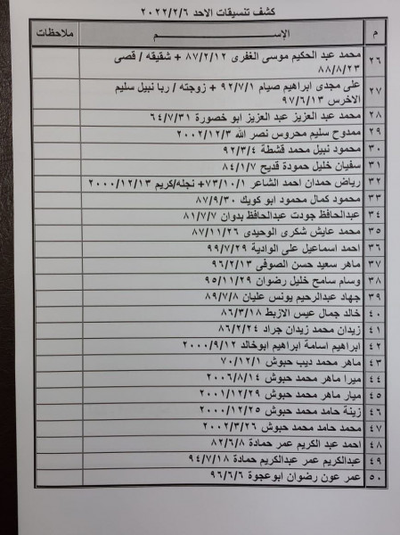 بالأسماء: الداخلية بغزة تعلن كشف "تنسيقات مصرية" للسفر يوم الاحد