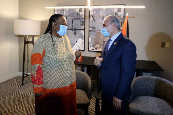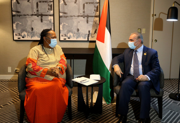 التقى رئيس الوزراء د. محمد اشتية، وزيرة خارجية جنوب أفريقيا ناليدي باندور، اليوم الجمعة في مقر اقامته بالعاصمة الاثيوبية أديس أبابا.