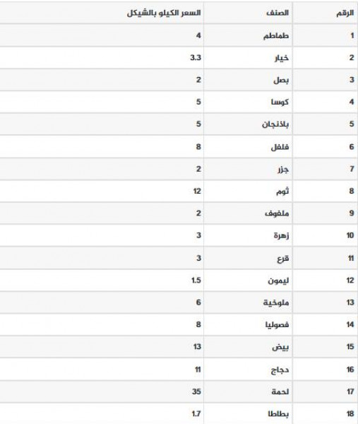جاءت أسعار الخضروات واللحوم في أسواق قطاع غزة، اليوم السبت 5 فبراير 2022، على النحو التالي: