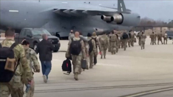 وأفادت الوكالة اليوم السبت إلى أن المجموعة الأولى من أفراد الفرقة الـ 82 من القوات الأمريكية المحمولة جوا وصلت إلى مطار "ياسيونكا" قرب مدينة جيشوف (على مسافة 70 كم تقريبا من الحدود البولندية الأوكرانية).