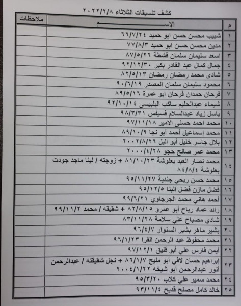 تعلن الهيئة العامة للمعابر والحدود بوزارة الداخلية والأمن الوطني عن وصول كشف "تنسيقات مصرية" للسفر عبر معبر رفح البري يوم الثلاثاء (8 فبراير).