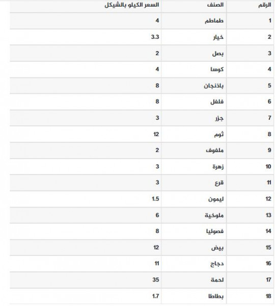 شؤون فلسطينية طالع أسعار الخضار واللحوم في اسواق غزة 2022-02-08 رابط مختصر: تابعنا أيضا عبر تليجرام t.me/alwatanvoice رام الله - دنيا الوطن جاءت أسعار المنتجات الزراعية في قطاع غزة اليوم الثلاثاء، كما يلي: