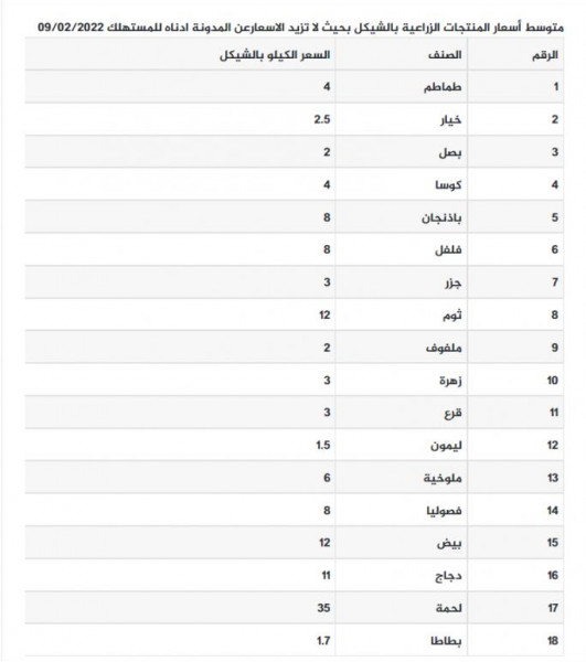 جاءت أسعار الخضروات واللحوم في أسواق قطاع غزة، اليوم الأربعاء، على النحو التالي: