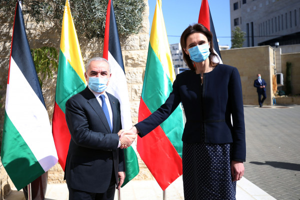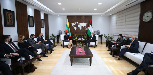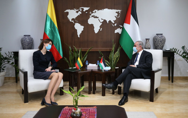 وقال رئيس الوزراء في تصريح صحفي عقب اللقاء: "تشرفت باستقبال رئيسة برلمان لتوانيا، وبحثنا تعزيز التعاون المشترك بين البلدين، وأطلعناها والوفد المرافق على الأوضاع في الأراضي الفلسطينية والانتهاكات الإسرائيلية، وتباحثنا في عدة أمور للحفاظ على حل الدولتين وانهاء الاحتلال، وحق شعبنا في العيش بدولته المستقلة المتواصلة جغرافيا وقابلة للحياة وعاصمتها القدس".