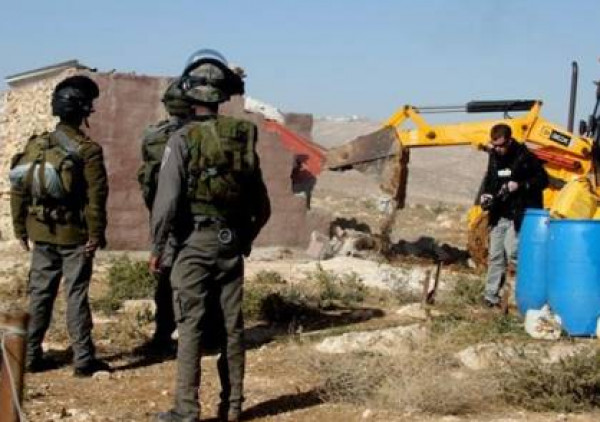 هدمت قوات الاحتلال الاسرائيلي، اليوم الأحد، غرفة زراعية في بلدة حلحول شمال الخليل.