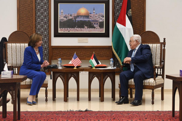 جاء ذلك خلال استقباله بمقر الرئاسة في مدينة رام الله، رئيسة مجلس النواب الأميركي، نانسي بيلوسي والوفد المرافق الذي ضم عددا من أعضاء مجلس النواب الأميركي.