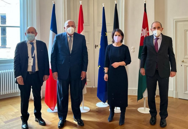 أكد وزراء خارجية الأردن ومصر وألمانيا وفرنسا، اليوم السبت، ضرورة وقف جميع الخطوات الأحادية التي تُقوض حل الدولتين وآفاق السلام العادل والدائم، لا سيما بناء المستوطنات وتوسيعها، ومصادرة الأراضي وترحيل الفلسطينيين من منازلهم، بما في ذلك في القدس الشرقية، ووقف أعمال العنف والتحريض.