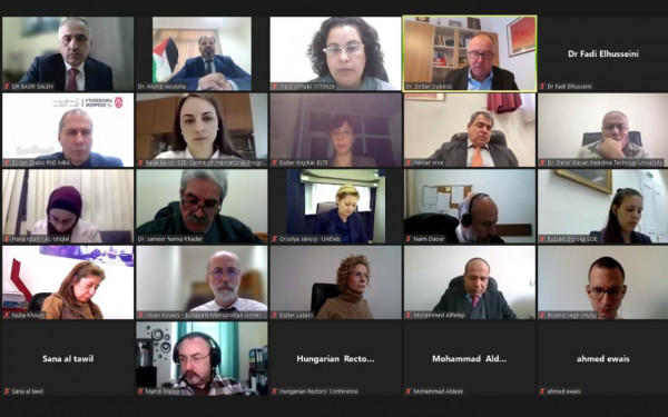 نظّمت وزارة التعليم العالي والبحث العلمي، بالتنسيق مع مجلس رؤساء الجامعات في هنغاريا، اليوم الثلاثاء، لقاءً عن بُعد؛ لبحث سبل تعزيز التعاون بين الجامعات الفلسطينية ونظيراتها الهنغارية في المجالين الأكاديمي والبحثي.