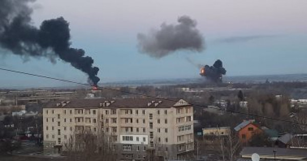 وكان أعلن الرئيس الروسي فلاديمير بوتين، بدء عملية عسكرية في إقليم دونباس شرق أوكرانيا، والذي اعترفت روسيا باستقلاله قبل يومين وأبرمت مع قادته اتفاقية صدقة، بالتزامن مع بدء التحرك البري العسكري في مدن أوكرانية خلال الساعات القليلة الماضية.