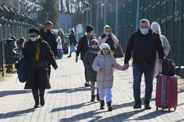 نزح مئات الأوكرانيين من بلدهم إلى بولندا المجاورة، فرارا من الحرب التي اندلعت في بلدهم صباح الخميس.