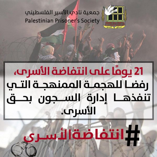 نادي الاسير: انتفاضة الأسرى متواصلة لليوم الـ21 على التوالي.. وتوتر يسود السجون