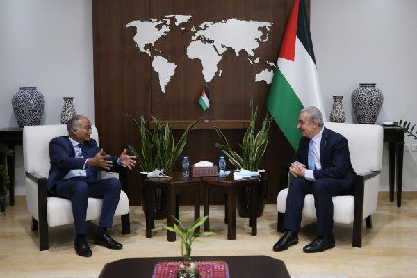التقى رئيس الوزراء د. محمد اشتية، اليوم الأحد في مكتبه برام الله، المدير والممثل المقيم للبنك الدولي في فلسطين، كانثان شانكار، ووفد من الإدارة الإقليمية، حيث بحث معهم آخر التطورات الاقتصادية وتعزيز التعاون في تنفيذ المشاريع التنموية.