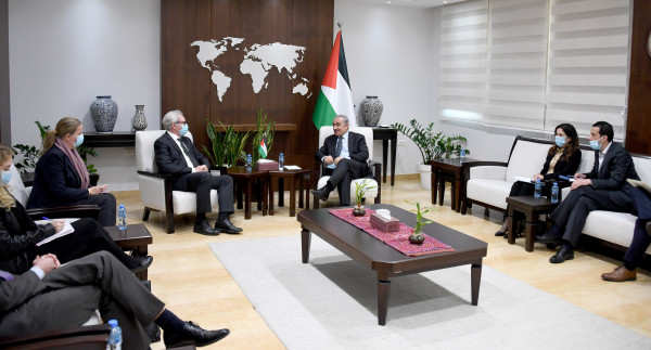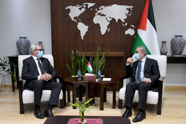 بحث رئيس الوزراء د. محمد اشتية مع المبعوث النرويجي الخاص لعملية السلام جون هينسين، تحضيرات اجتماع المانحين القادم، وذلك اليوم الثلاثاء في مكتبه برام الله، بحضور ممثلة النرويج لدى فلسطين تورن فيستي.
