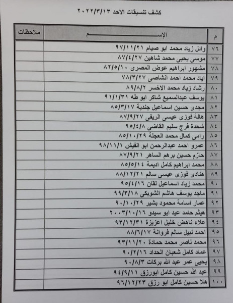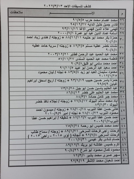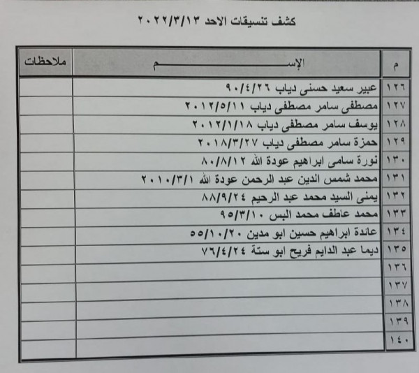 وطالبت المواطنين الوارد اسمائهم في الكشف بالتوجه لإجراء فحص كورونا بدءاً من الساعة 7 صباح الأحد في مركز شهداء رفح الصحي، ثم التوجه للصالة الخارجية للمعبر لتسهيل سفرهم.
