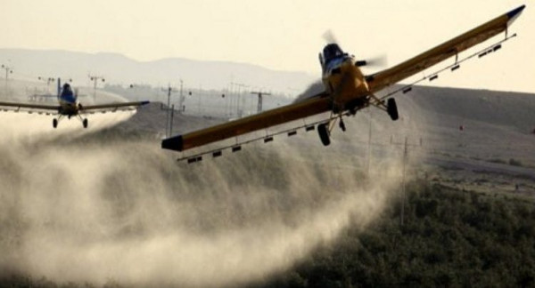 رشت طائرة تابعة للاحتلال الإسرائيلي، اليوم الأحد، مبيدات حشرية سامة على مزروعات المواطنين شرق دير البلح وسط قطاع غزة.