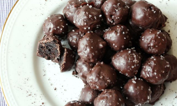 4. اغمسي كرات الكيك بالشوكولاتة السائلة حتى تتغطي من جميع الجهات.