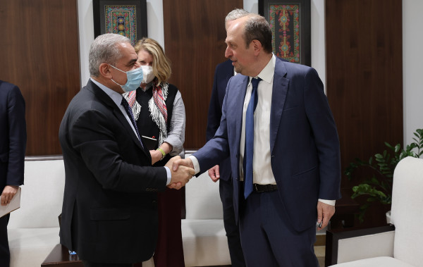 كما طالب رئيس الوزراء بالضغط على إسرائيل لوقف إجراءاتها بحق ابناء شعبنا ووقف إرهاب المستوطنين، ووقف اقتحامات كل من المسجد الأقصى والحرم الإبراهيمي.
