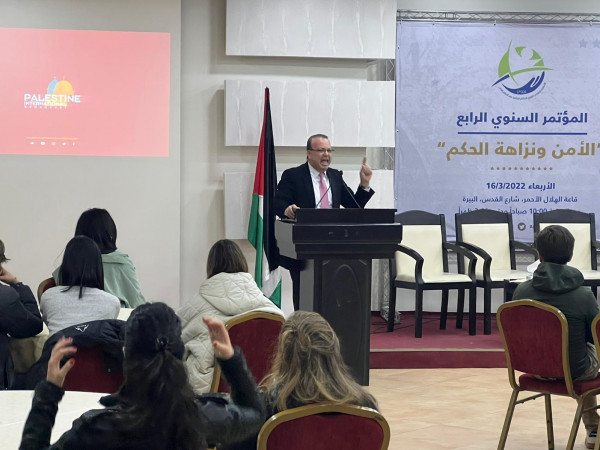 وتم عرض فيديو يوضح أثار جدار الفصل العنصري والحواجز الالكترونية على حياة المواطنين الفلسطينيين.