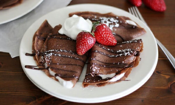 نحضر قطعة كريب وتدهن بقليل من شوكالاتة السائلة للدهن ويوضع فوقها قليل من الكريمة وتلف وتقطع الى دوائر وتوضع في طبق التقديم.