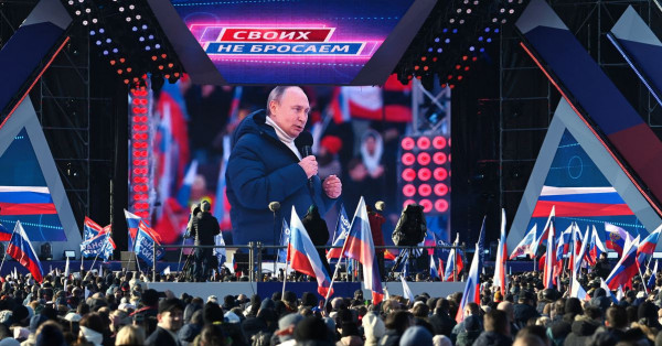 واعتبر في خطاب وجها لوجه عشرات الآلاف من مواطنيه في ملعب رياضي بشأن الحرب في أوكرانيا، أن تضحيات الجيش الروسي في أوكرانيا دفاعا عن الناطقين بالروسية هناك تمثل أعلى درجات المحبة.