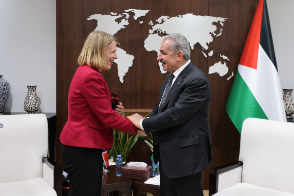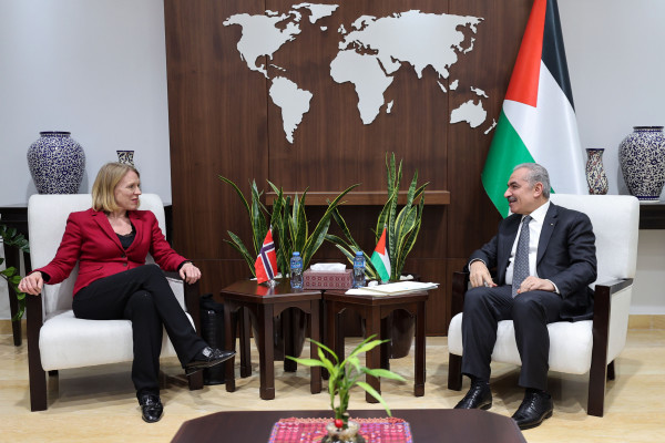 وثمن اشتية دعم النرويج الثابت والمستمر لفلسطين، وموقفها بدعم حقوق الشعب الفلسطيني من منطلق ايمانها بمبادئ العدل والسلام، مشيرا الى أهمية تعزيز التعاون وتقديم دعم إضافي لمشاريع تساهم في دعم الشباب وخلق فرص عمل لخفض نسبة البطالة بين صفوف خريجي الجامعات، بالإضافة إلى مشاريع تمكين المرأة، والطاقة الشمسية.